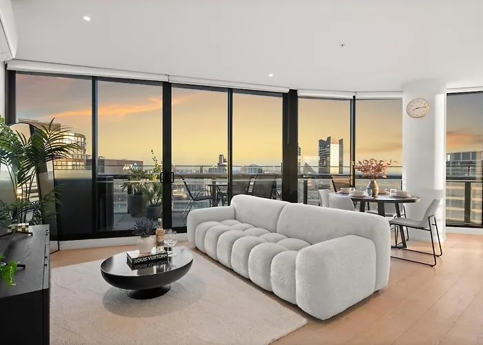 屋内プールを提供する広々としたメルボルンSub Penthouse In Docklands W Breathtaking Views - Pool, Gym & Parkingアパートメントは、ダルボラ・マリーナズ・ビクトリアハーバーから徒歩で5分くらいです。 テラス付きのこのアパートはドックランズ・パークすぐ近くに位置しています。